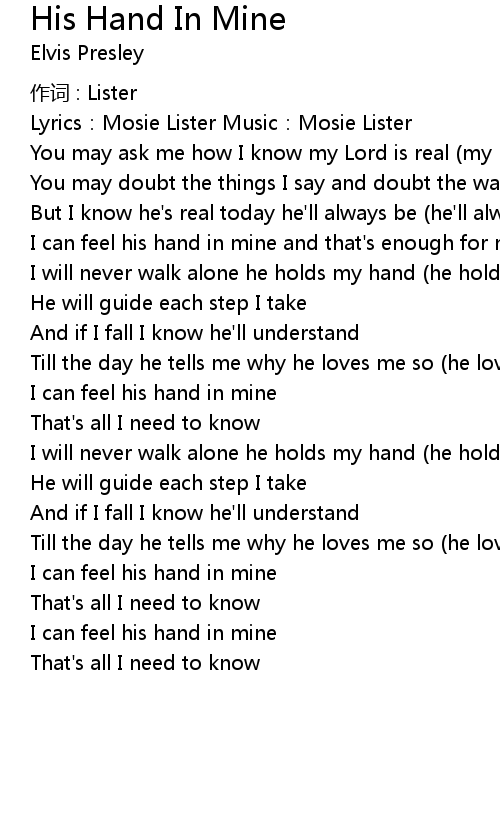 | 歌曲 | His Hand In Mine |