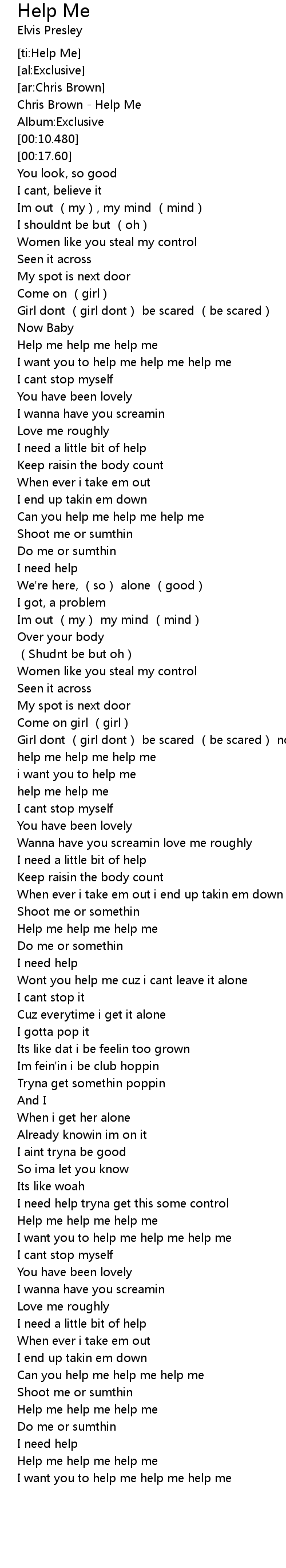| [00:02.600] | Chris Brown Help Me |