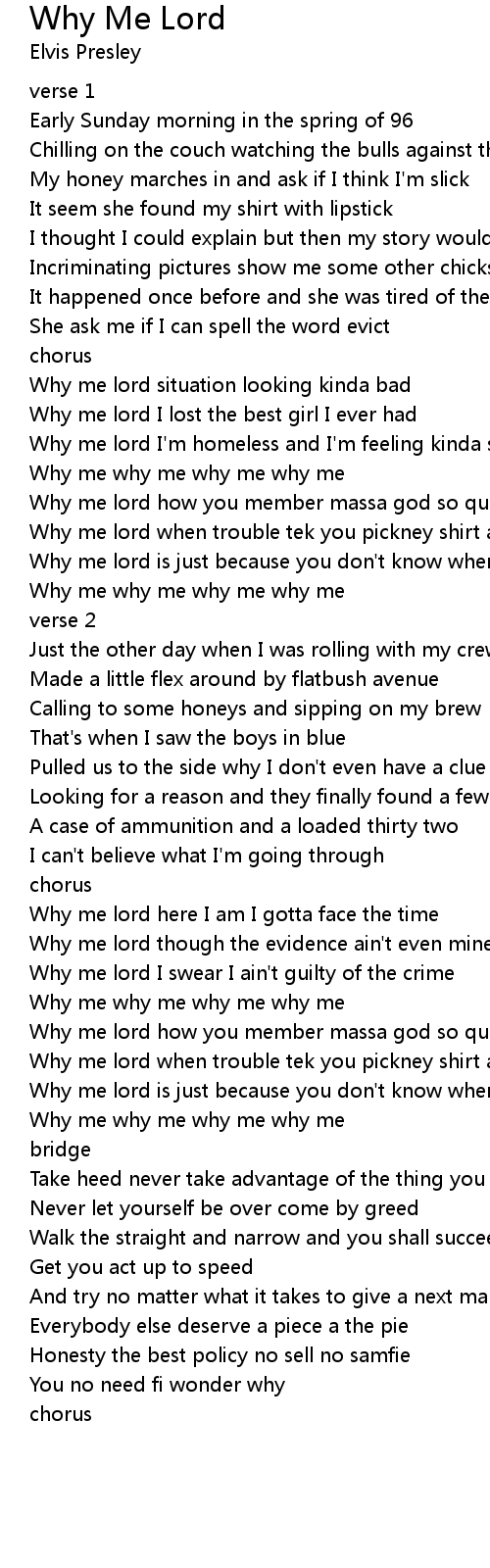 Why me lord I'm homeless and I'm feeling kinda sad |