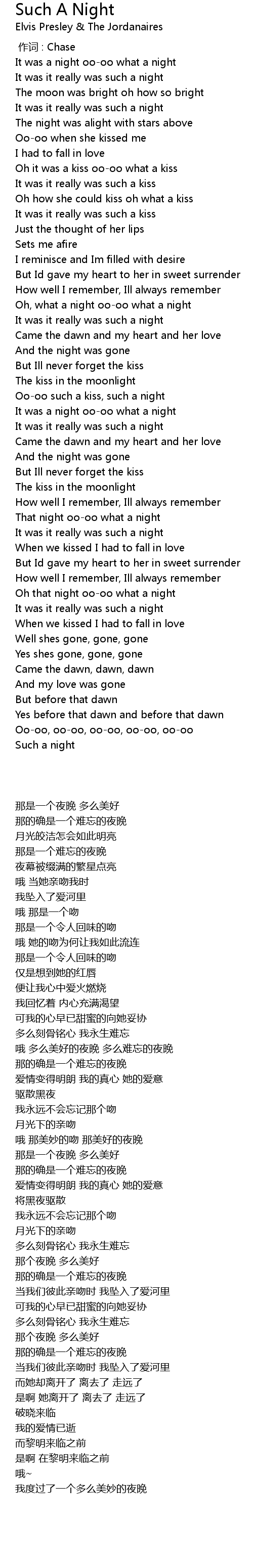 | 歌曲 | Such A Night |