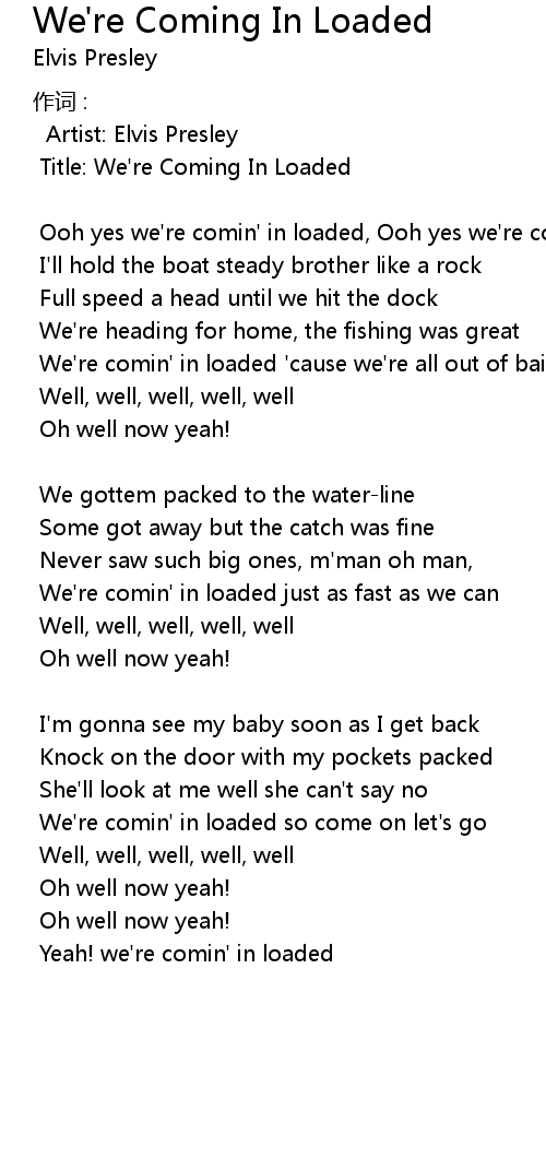 | Ooh yes we're comin' in loaded, Ooh yes we're comin' in loaded | |