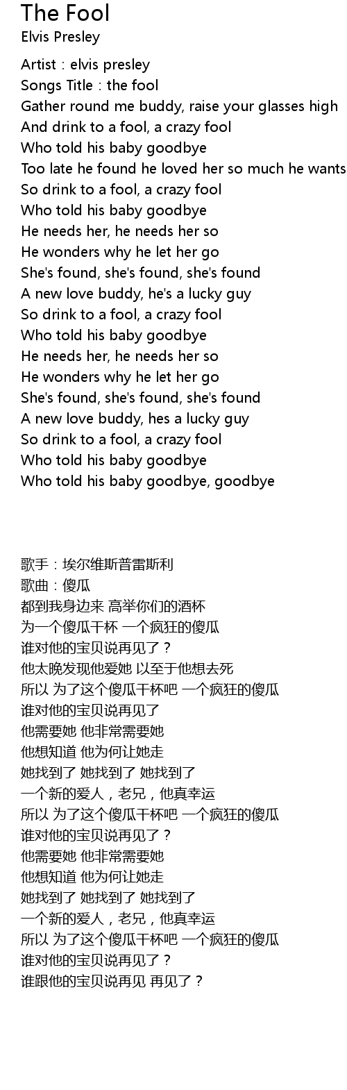 | [00:02.53] | Songs Title:the fool |