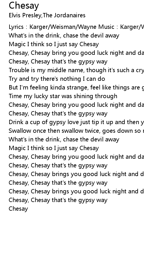 | Chesay, Chesay bring you good luck night and day | |