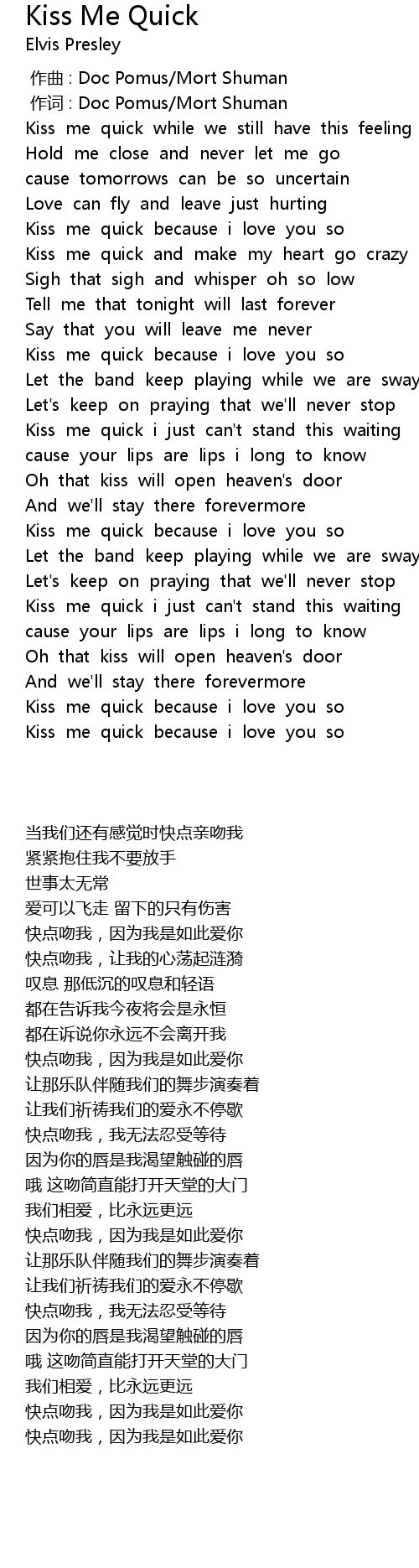 | [00:34.362] | Kiss me quick and make my heart go crazy |