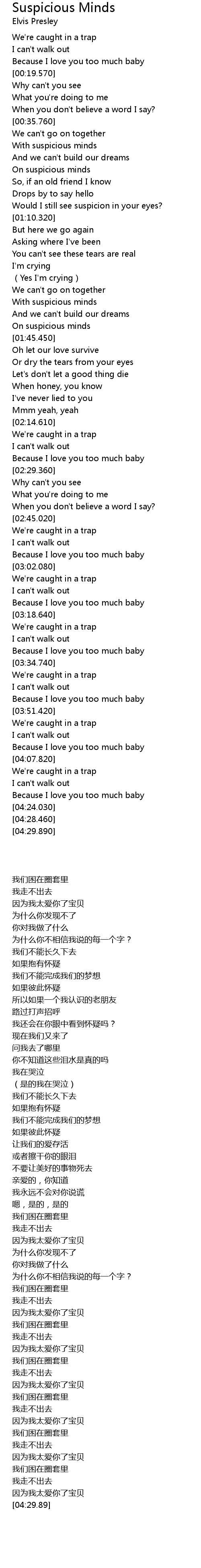 | [01:33.490] | With suspicious minds |