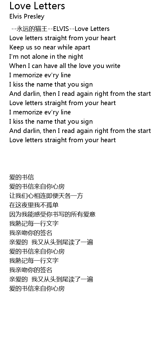 | [00:03.42] | --永远的猫王--ELVIS--Love Letters |