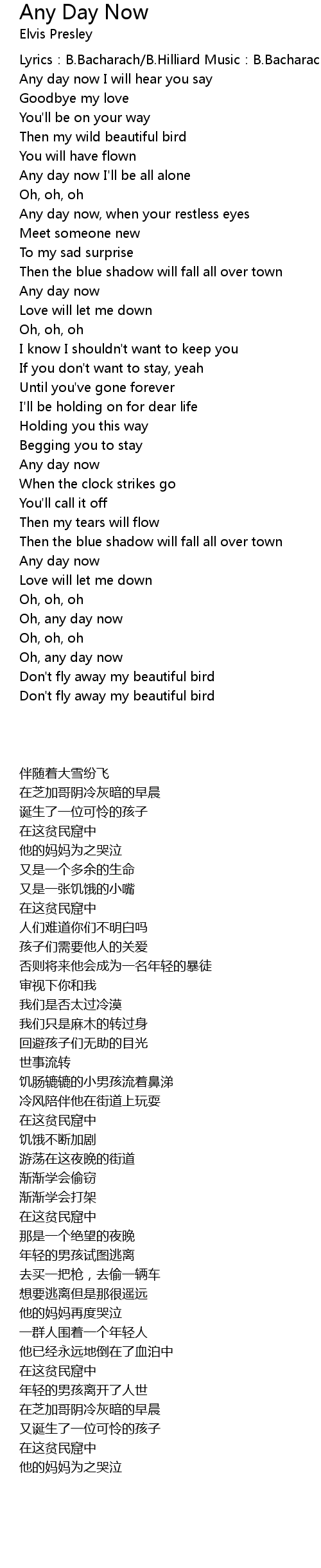 | 歌曲 | Any Day Now |