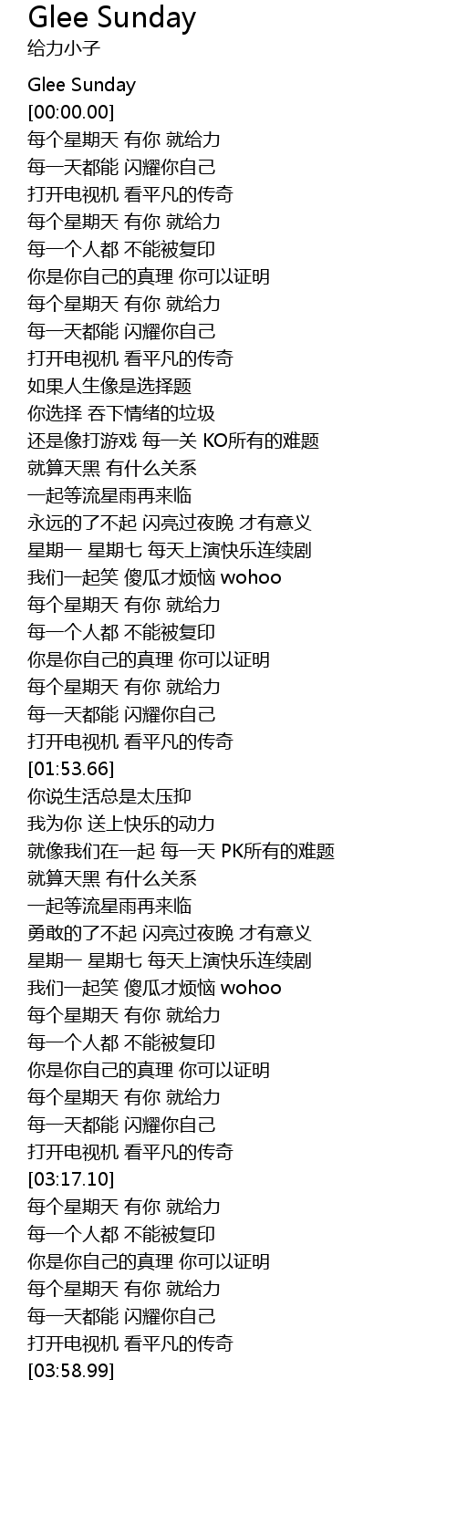| [03:02.69] | 每个星期天 有你 就给力 |