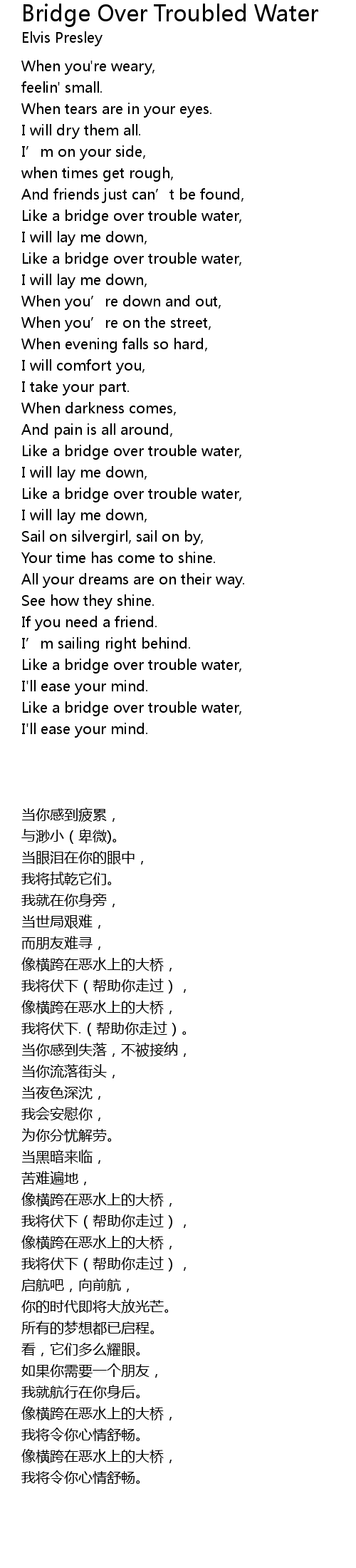 | [02:59.820] | Like a bridge over trouble water, |