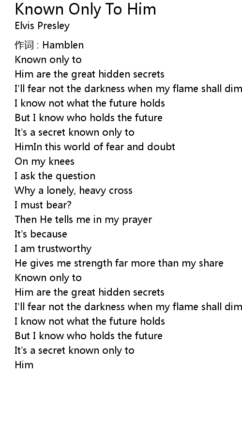 | 歌曲 | Known Only To Him |