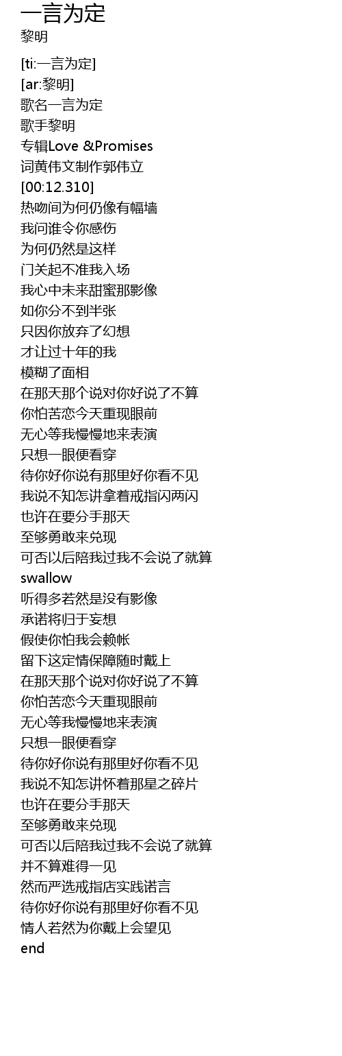 | [00:06.308] | 词黄伟文制作郭伟立 |