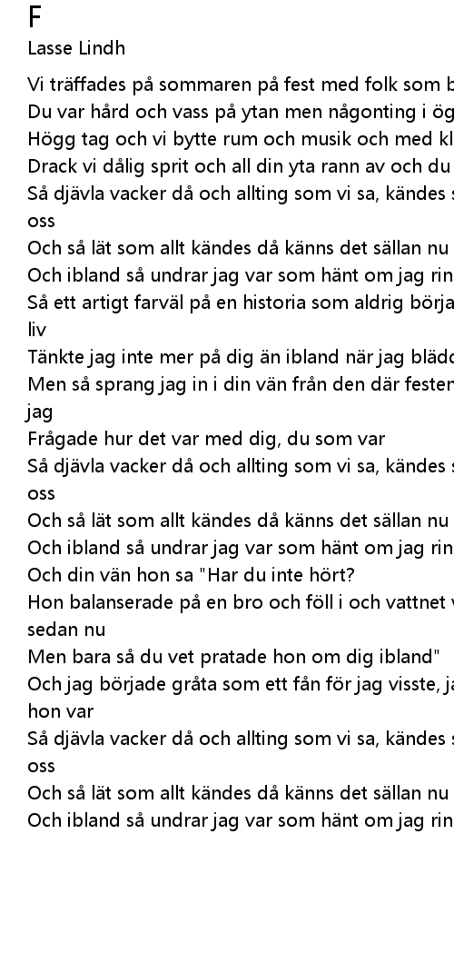 | T nkte jag inte mer p dig n ibland n r jag bl ddrade f rbi ditt nummer | |