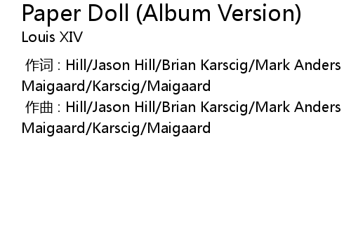 | [00:00.000] | 作词 : Hill/Jason Hill/Brian Karscig/Mark Anders Maigaard/Karscig/Maigaard |