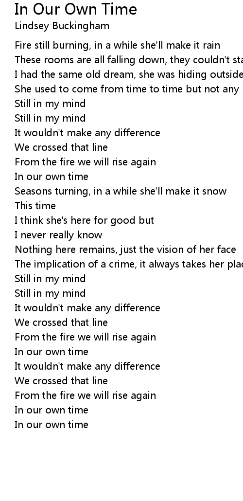 Fire still burning, in a while she'll make it rain |