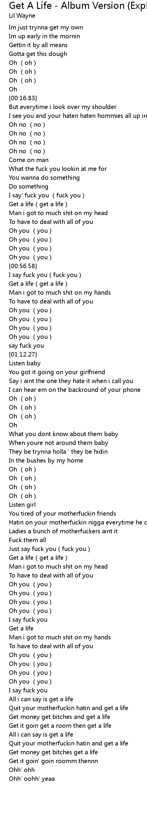 | [02:44.73] | Quit your motherfuckin hatin and get a life |