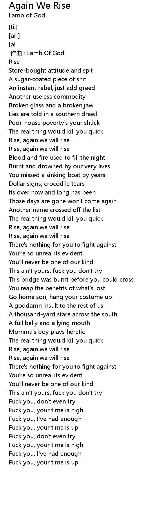 | [03:09.03] | Rise, again we will rise |