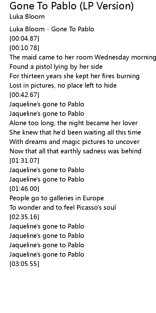 [00:00.87] Luka Bloom - Gone To Pablo