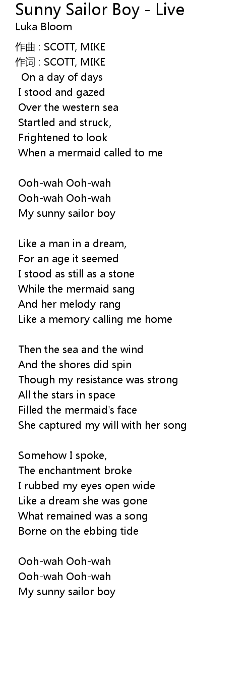 | 歌曲 | Sunny Sailor Boy - Live |