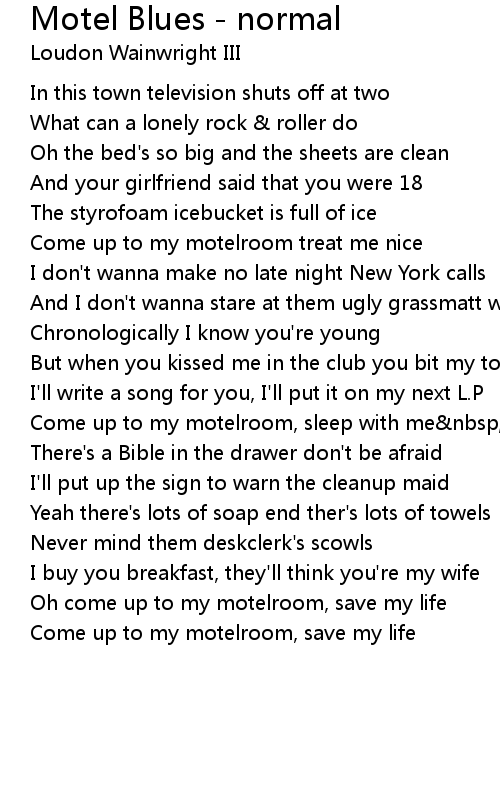 Oh come up to my motelroom, save my life |