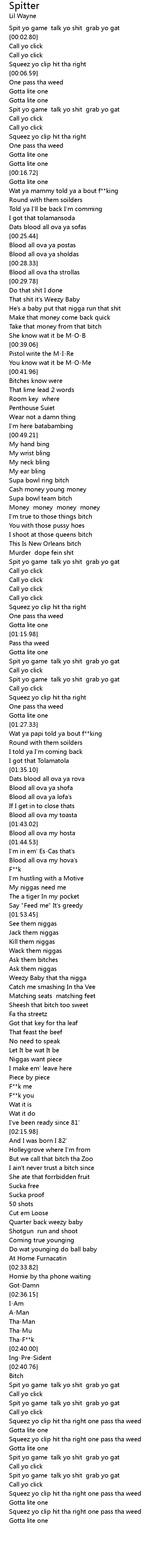 Spit yo game talk yo shit grab yo gat |