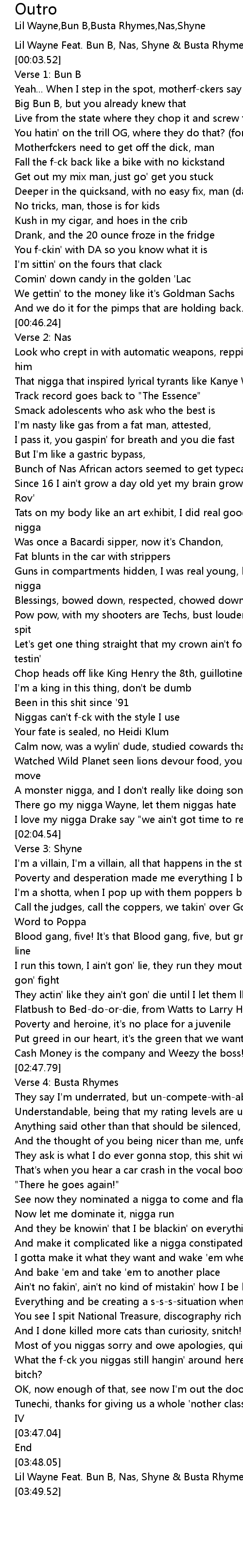 Lil Wayne Feat. Bun B, Nas, Shyne & Busta Rhymes - Outro |