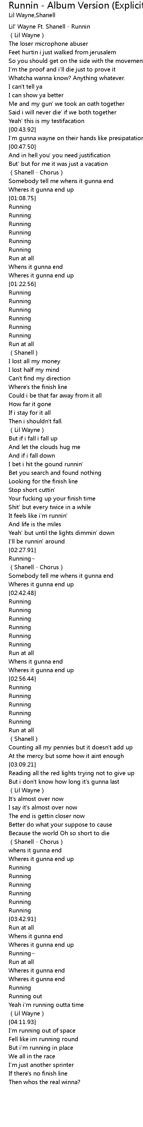 | [00:01.22] | Lil' Wayne Ft. Shanell - Runnin |