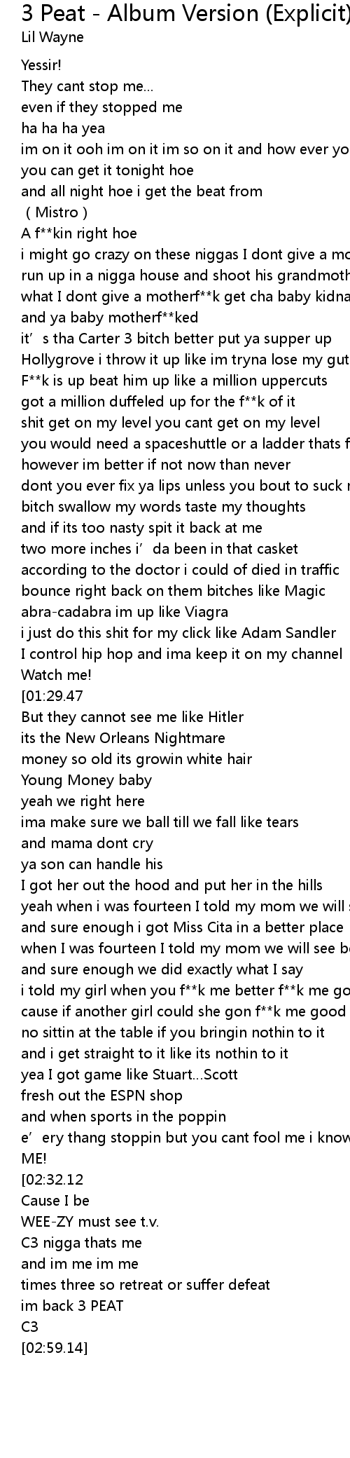 | 歌曲 | 3 Peat - Album Version (Explicit) |