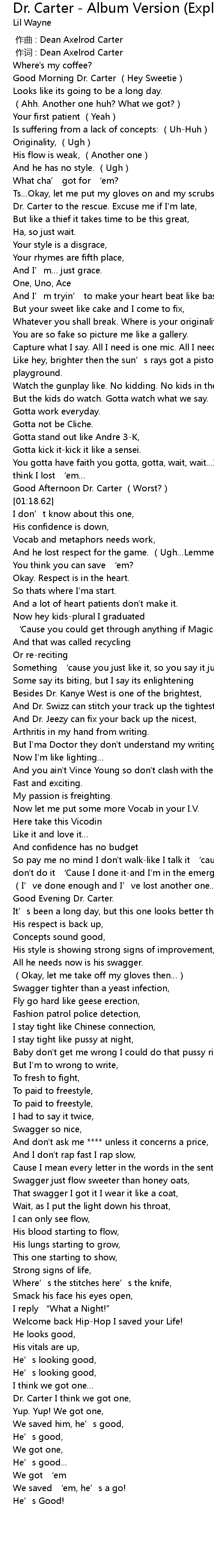 Dr. Carter - Album Version (Explicit) 歌词