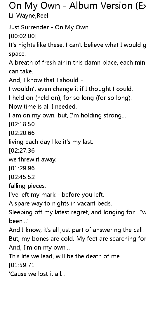 | [00:29.07] | I am on my own, but, I'm holding strong… |