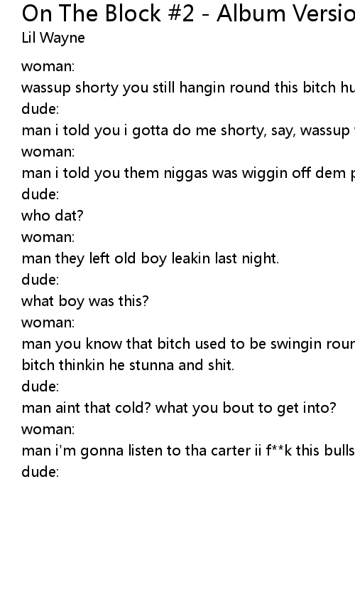 man i'm gonna listen to tha carter ii f**k this bullshit |