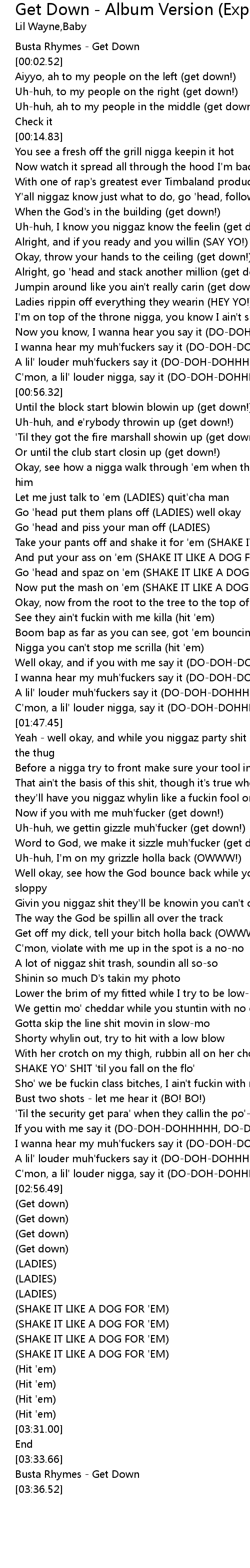 | [01:16.16] | And put your ass on 'em (SHAKE IT LIKE A DOG FOR 'EM) |