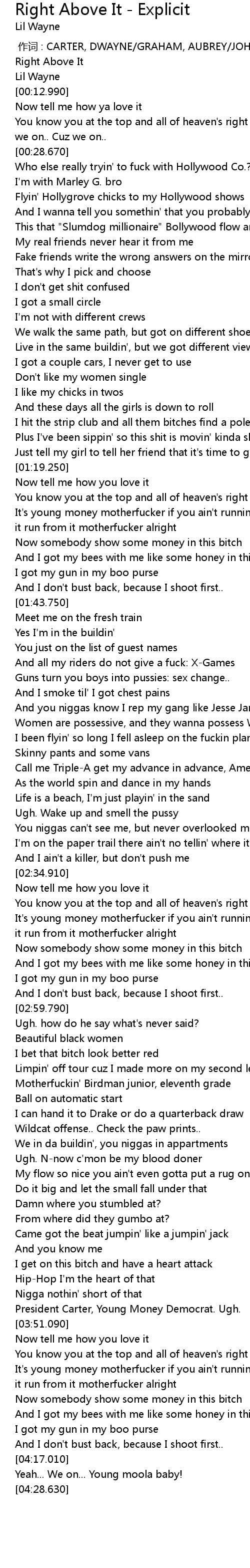 | [03:53.240] | You know you at the top and all of heaven's right above it we on.. |