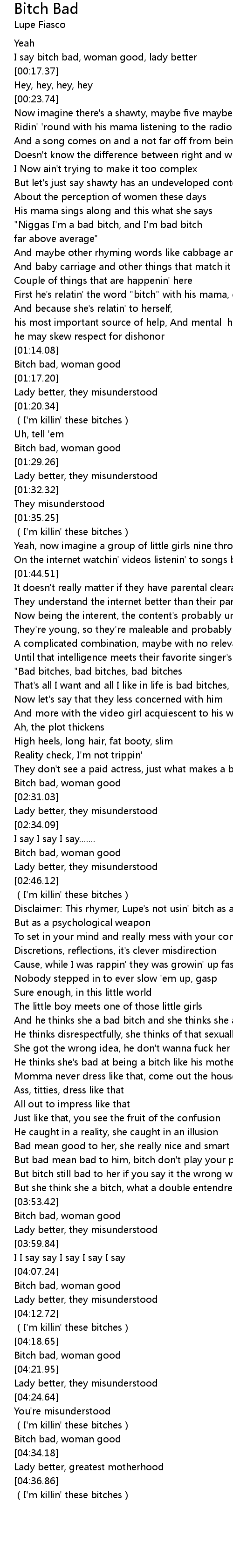 | [00:49.65] | "Niggas I'm a bad bitch, and I'm bad bitch |