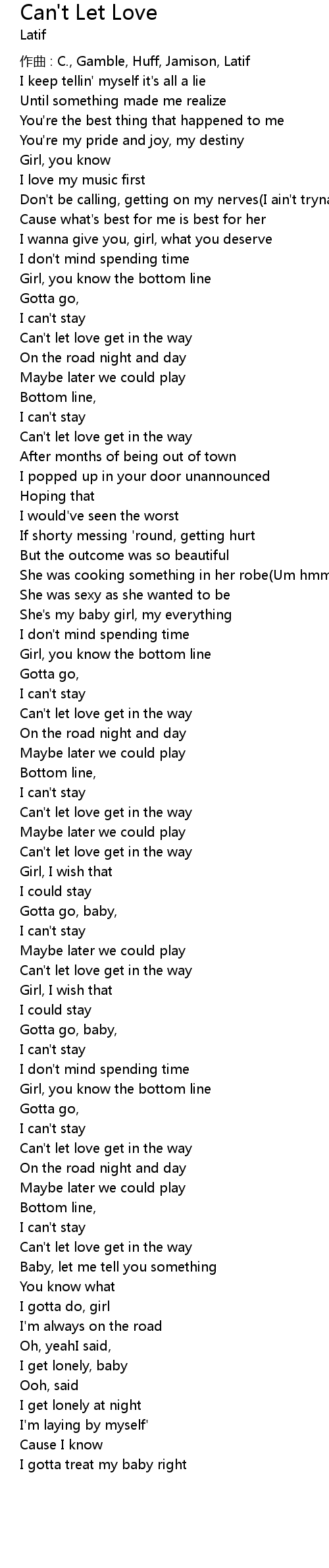 | 歌曲 | Can't Let Love |