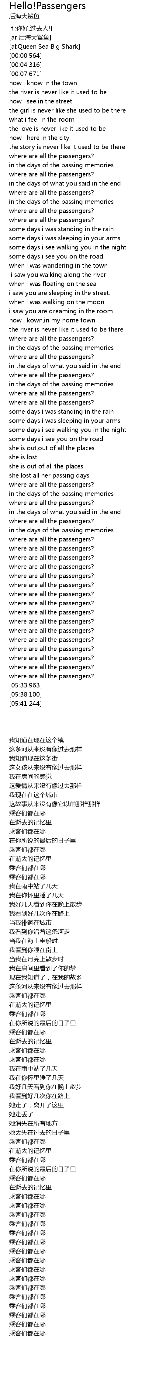 | [05:00.510] | 乘客们都在哪 |