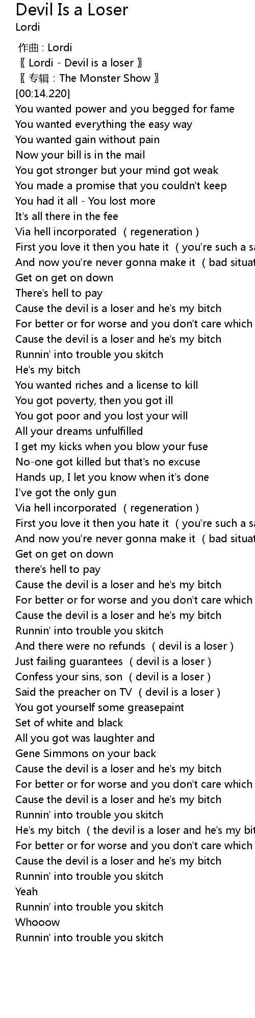 | [00:00.00] | 〖 Lordi - Devil is a loser 〗 |