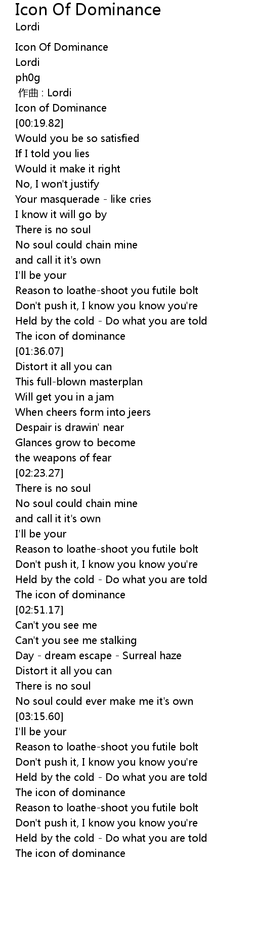 | [04:01.90] | Reason to loatheshoot you futile bolt |