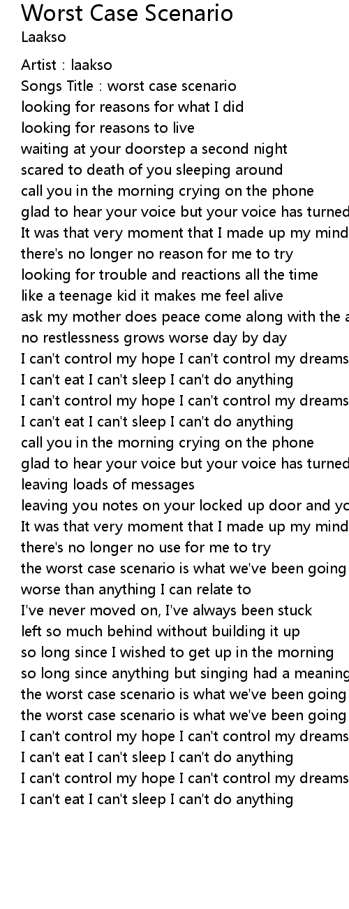 | [00:02.12] | Songs Title: worst case scenario |