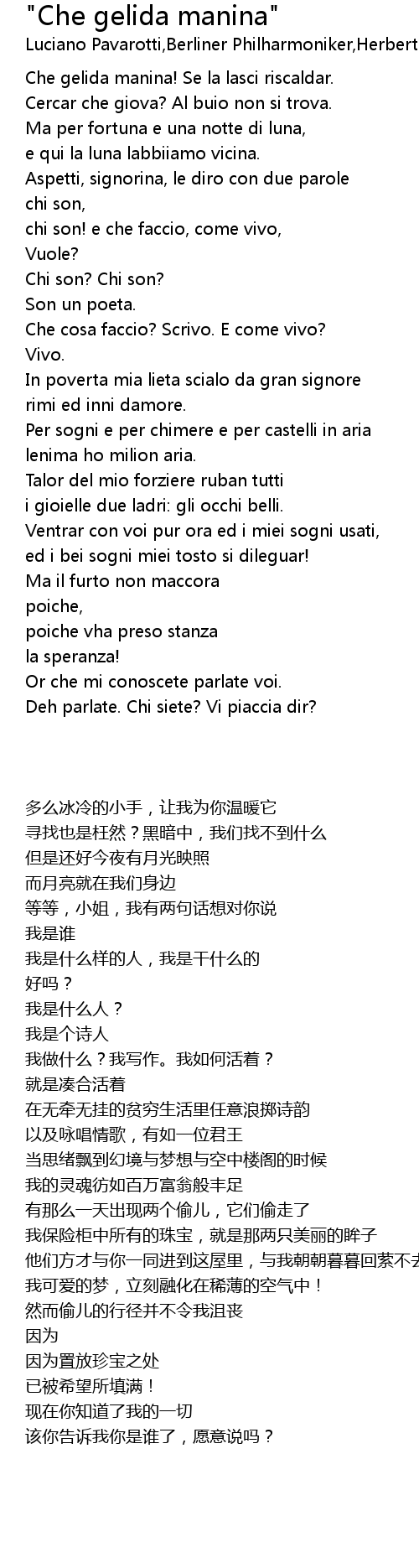 Che gelida manina! Se la lasci riscaldar. |