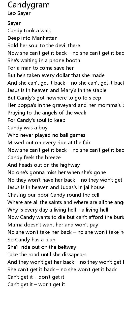 | For Candy' s soul to keep | |