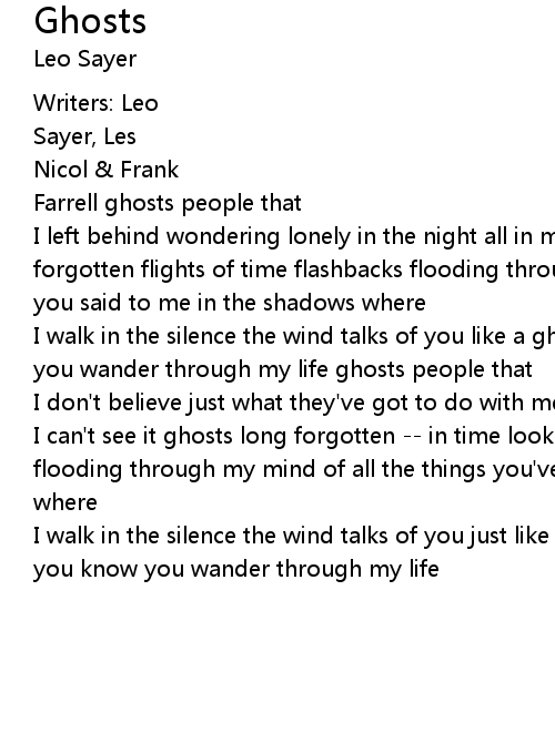 | I walk in the silence the wind talks of you like a ghost haunting the night so you wander through my life ghosts people that | |