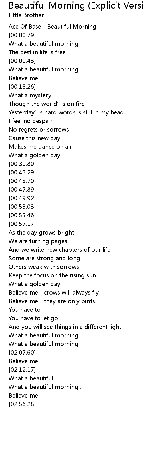 | [00:00.00] | Ace Of Base Beautiful Morning |