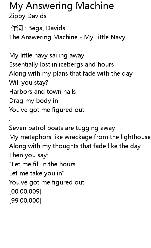 | [00:00.23] | The Answering Machine - My Little Navy |