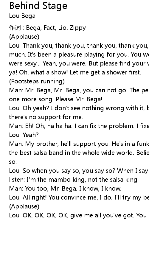 | Lou: OK, OK, OK, OK, give me all you' ve got. You play salsa, I' ll sing mambo. |