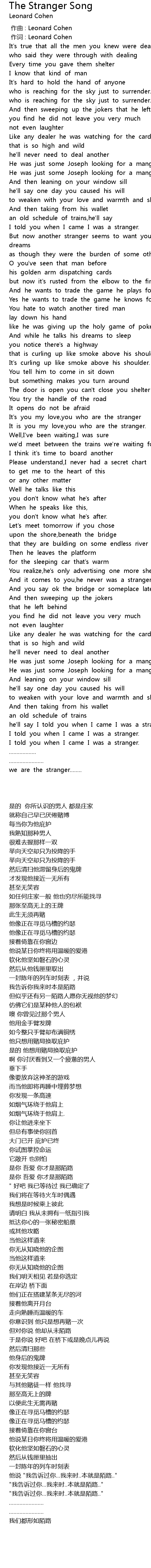 | [00:00.00] | zuo qu : Leonard Cohen |