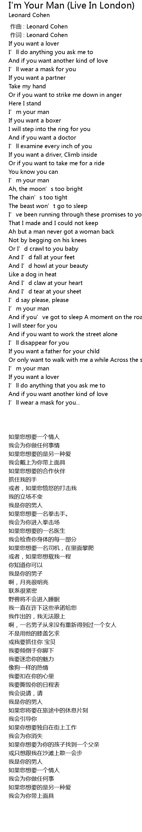 | [00:01.00] | zuò cí : Leonard Cohen |