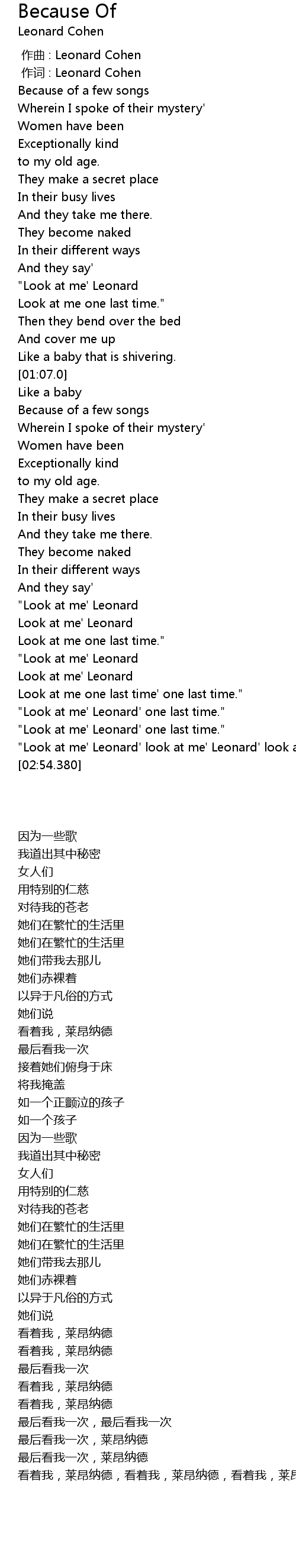 | [00:01.00] | zuò cí : Leonard Cohen |