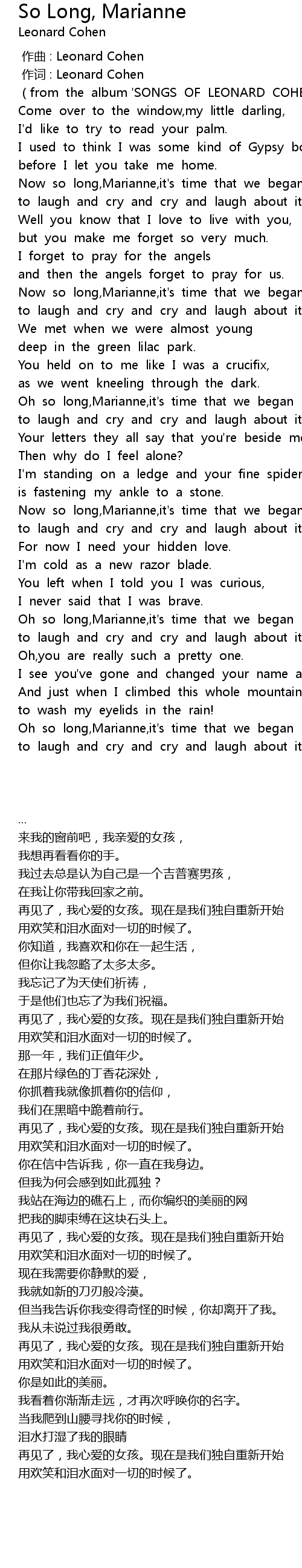 | 歌曲 | So Long, Marianne |