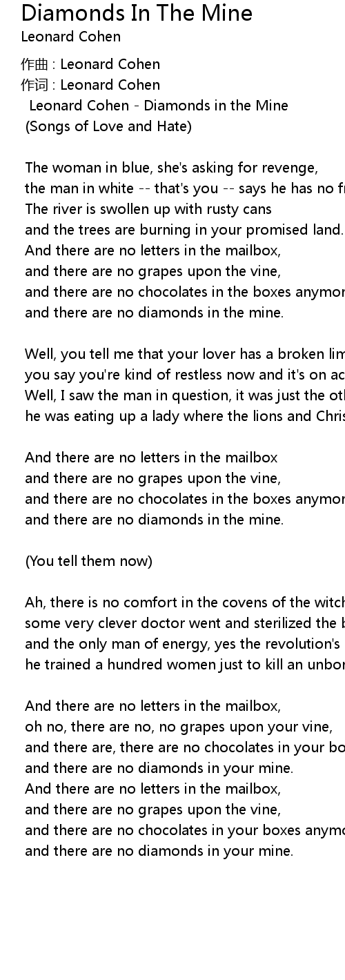 | Leonard Cohen Diamonds in the Mine | |