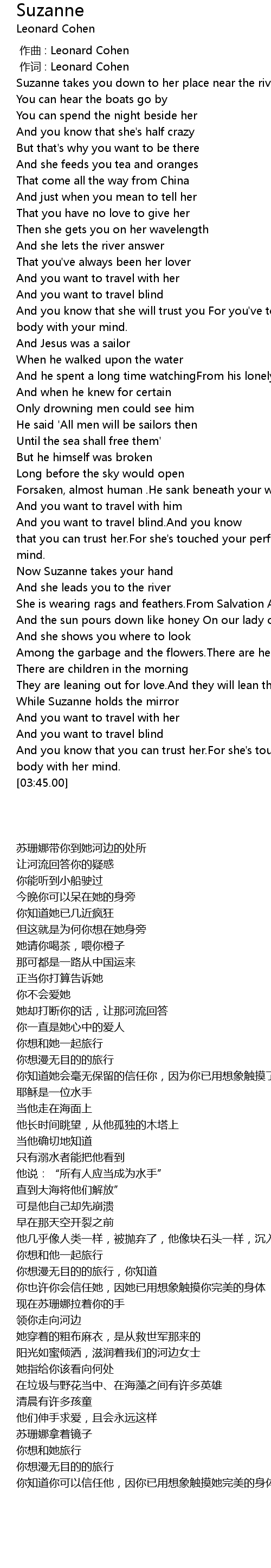 | [02:44.00] | Now Suzanne takes your hand |